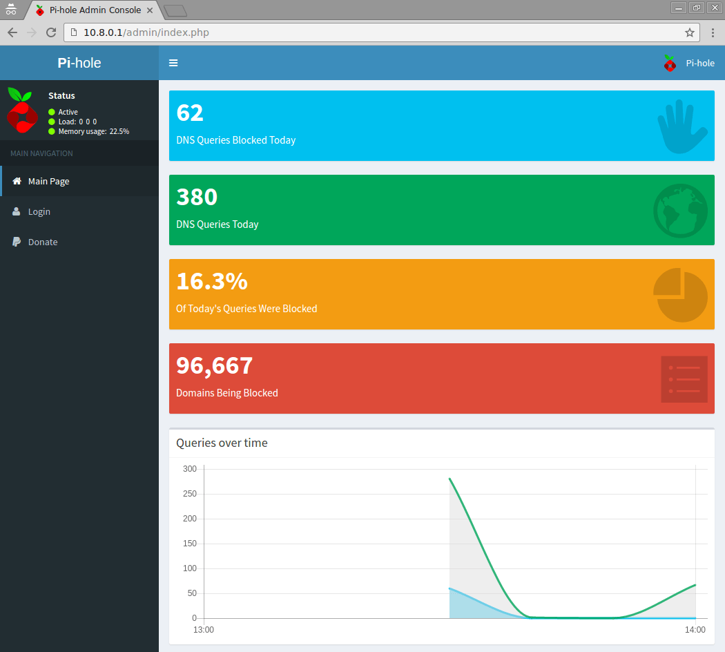 The web interface of your Pi-hole will be visible at http://pi.hole/admin/ (even with the recommended firewall configuration mentioned on another subpage)